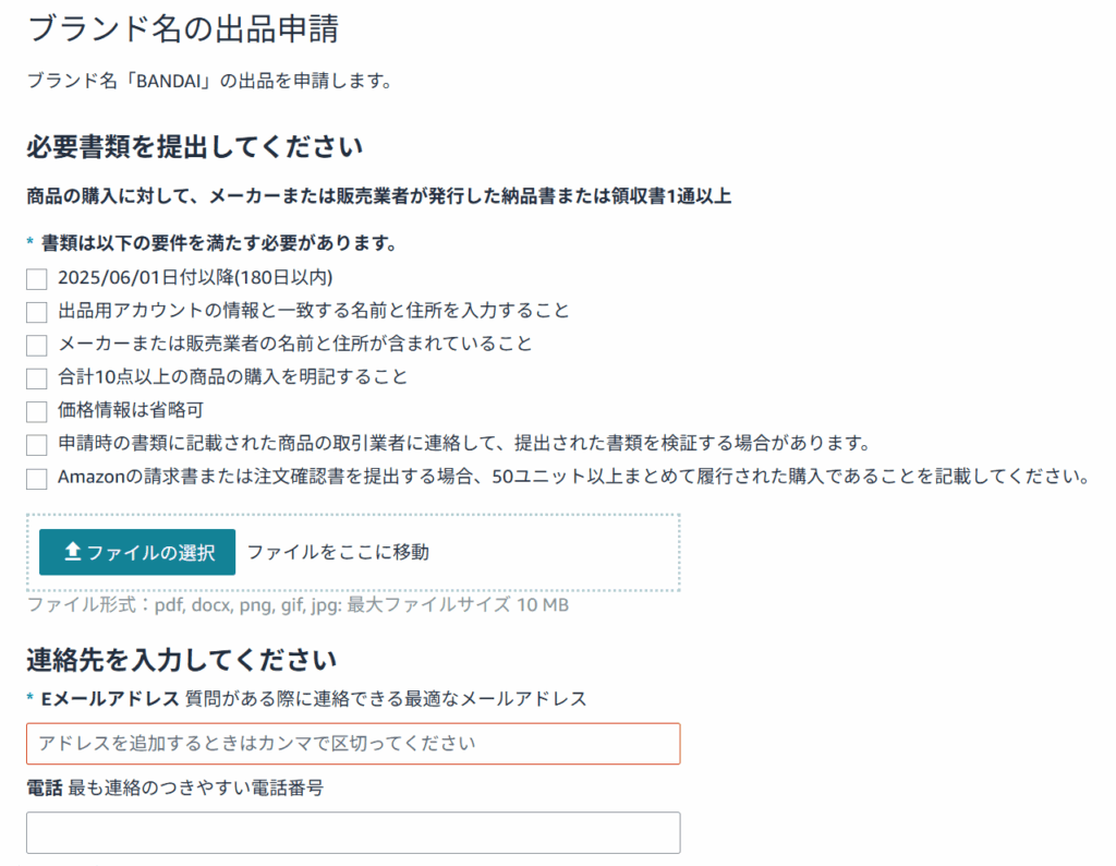 O/NE aminoRESQ:AENAのオンラインで10点購入した領収書で許可。ただ一部商品はさらにTransparency出品情報アプリケーションとなっていて実際には出品出来ない状態。