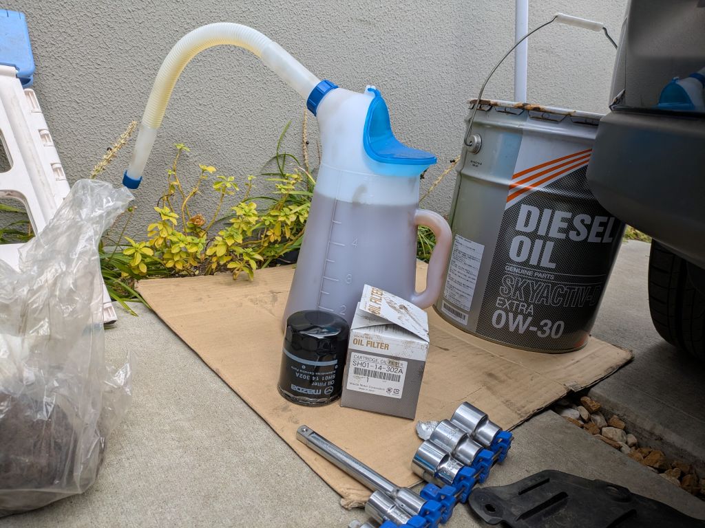 前回同様マツダ純正SKYACTIV-D 0W-30と純正エレメントへの交換です。